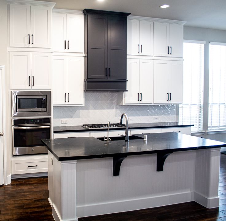 - Install Negresco Leathered Quartzite countertops, black fireclay sink, and faucet
